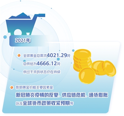 方正中期期貨有限公司貴金屬研究員史家亮認(rèn)為,2021年,全球黃金總需求4021.29噸,總供給為4666.12噸,供過(guò)于求的狀態(tài)仍在持續(xù)。不過(guò),黃金價(jià)格并沒(méi)有持續(xù)大幅回落,主因在于黃金的商品屬性對(duì)價(jià)格的影響仍在弱化,黃金的債券屬性和貨幣屬性是黃金價(jià)格走勢(shì)的核心影響因素,而這又與美聯(lián)儲(chǔ)貨幣政策走勢(shì)密切相關(guān)。