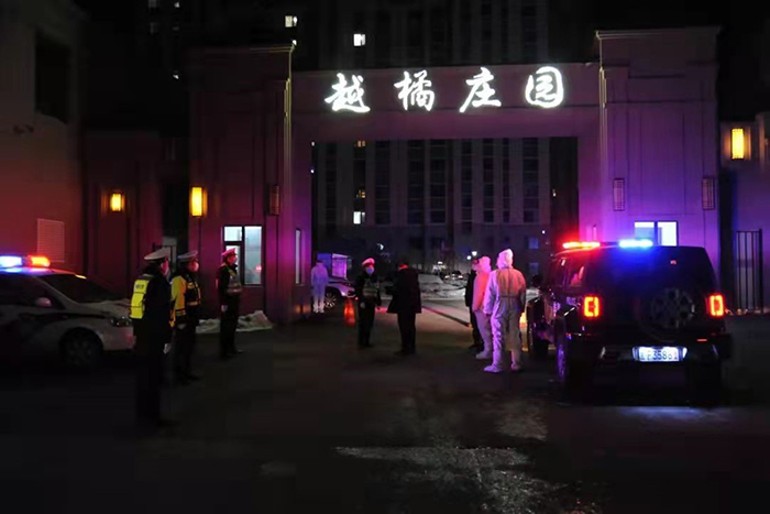 晚8時(shí)55分,南越橘莊園小區(qū)北門前警燈閃爍,小區(qū)內(nèi)點(diǎn)點(diǎn)燈火。9名伊美區(qū)交警大隊(duì)民警、14名治安大隊(duì)民警在卡口靜靜值守。初春的林城乍暖還寒,按照防控要求,他們24小時(shí)在這里堅(jiān)守。在冷冽的春風(fēng)中,他們已經(jīng)值守了一整天,檢查進(jìn)入車輛100余臺次,餓了吃口盒飯,渴了喝一口礦泉水……民警劉慶凱、陳剛表示,為了百姓的安全,他們隨時(shí)在崗。